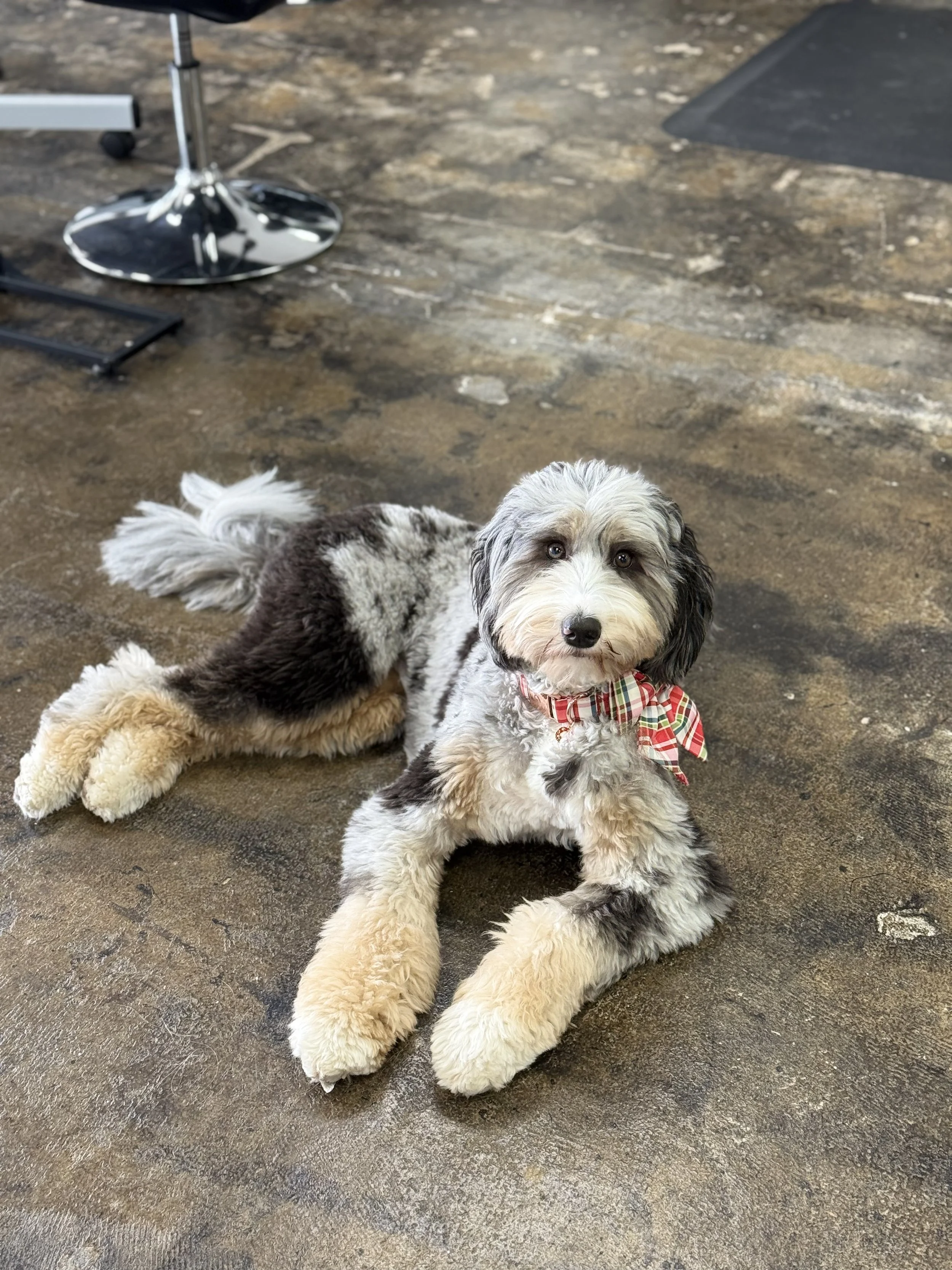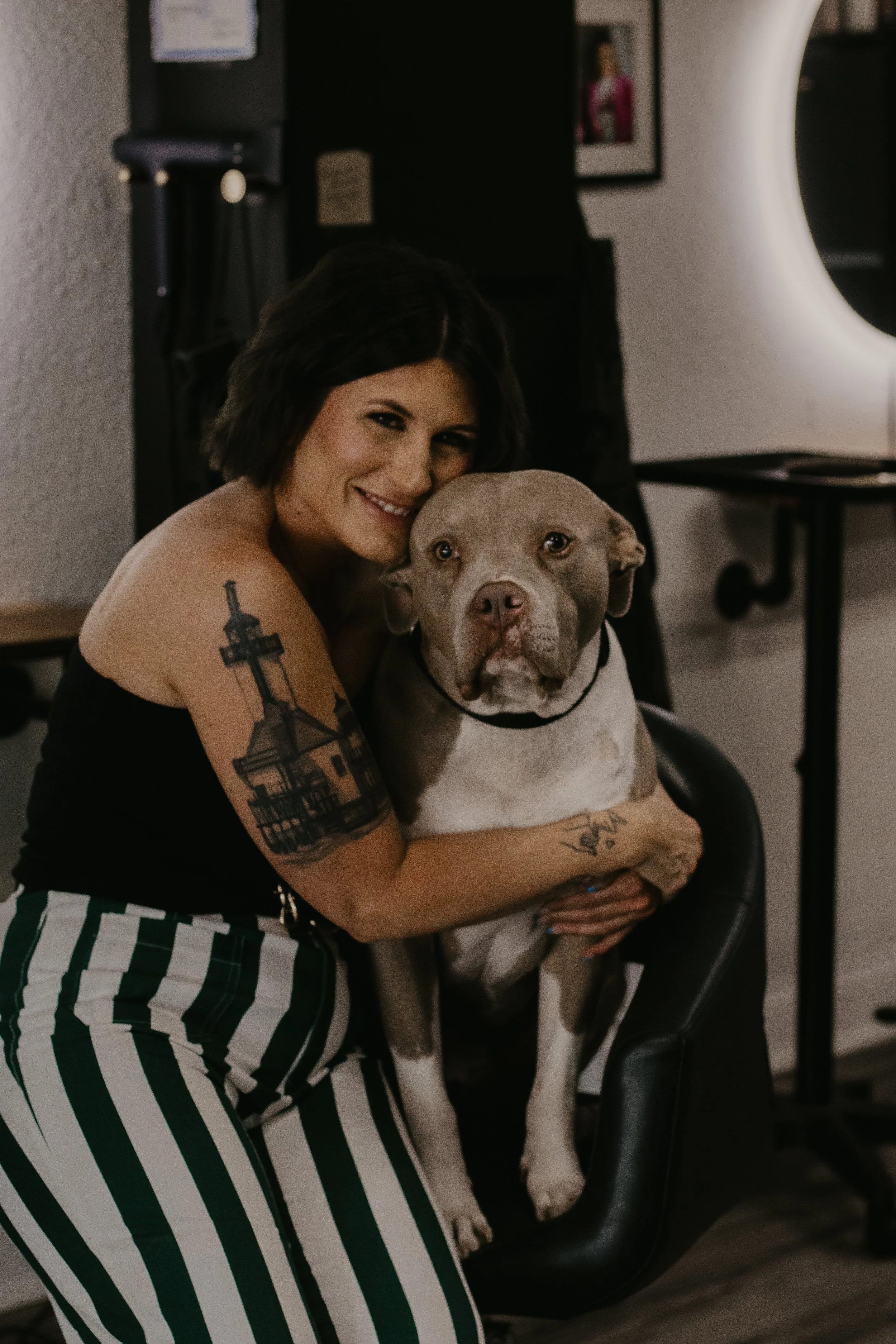 Val is Kailyn’s dog. Val is our happy, prancing social butterfly. She loves coming to the salon to visit everyone, spread joy and show off her best strut. When she’s not working, she’s busy loving her family and taking her sisters to school. Her favorite reward after a long day of being everyone’s best friend? A bone.
